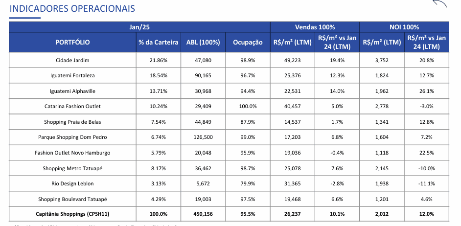 Esses ativos são direcionados a públicos de maior poder aquisitivo, o que eleva o ticket médio das vendas e garante resiliência mesmo em períodos de inflação ou desaceleração econômica. Além disso, os shoppings apresentam indicadores operacionais robustos: